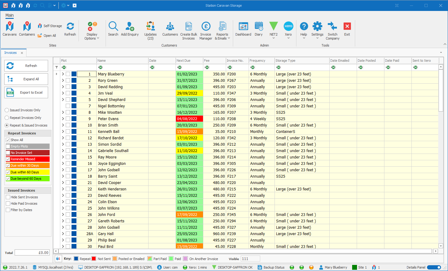 See which of your customers are coming up for storage renewal.